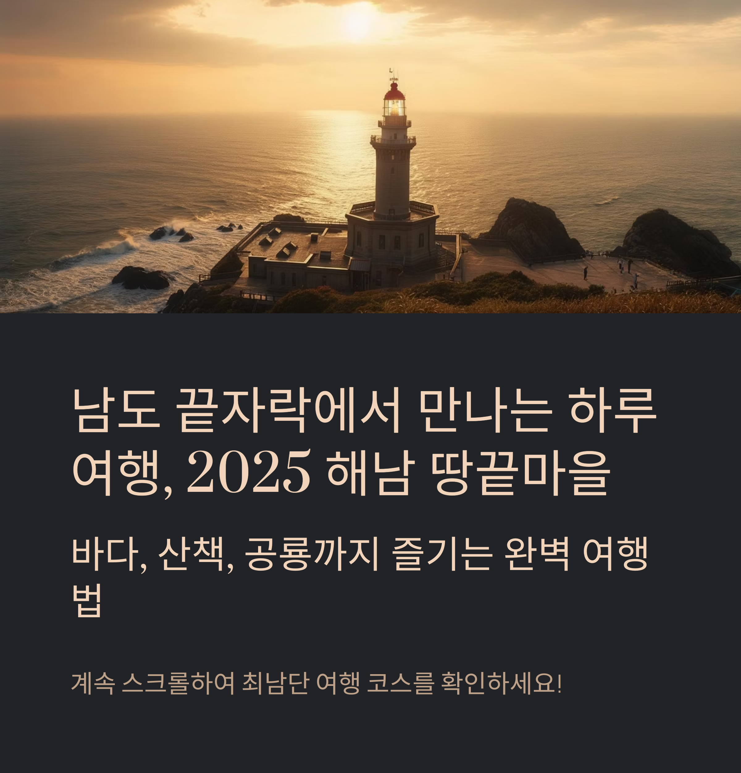 **"한반도의 끝, 새로운 시작의 땅"**이라는 상징이 말해주듯, 이곳에서의 하루는 또 다른 여행의 출발점이 됩니다.