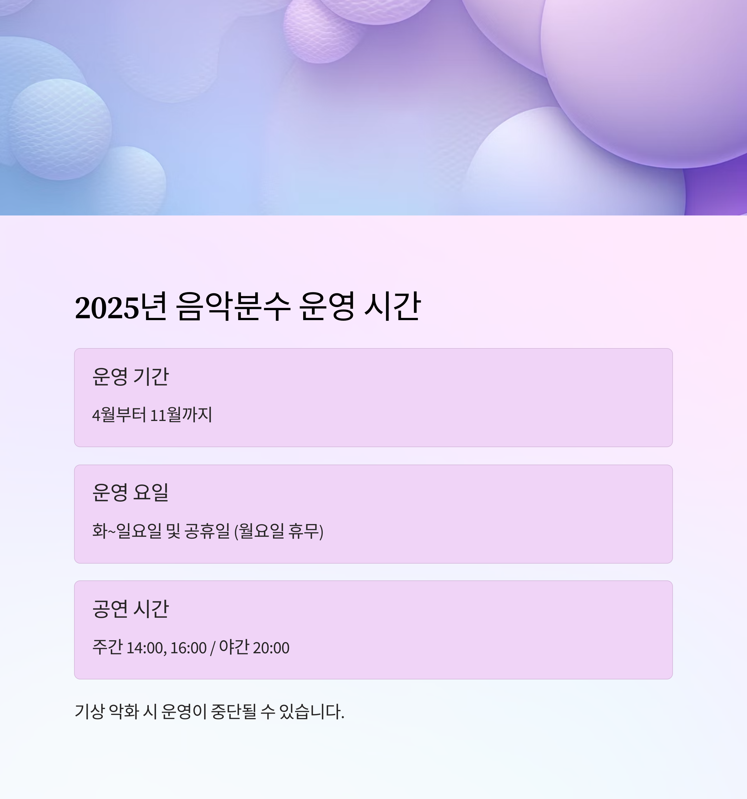 2025년 음악분수 운영 시간표 요약