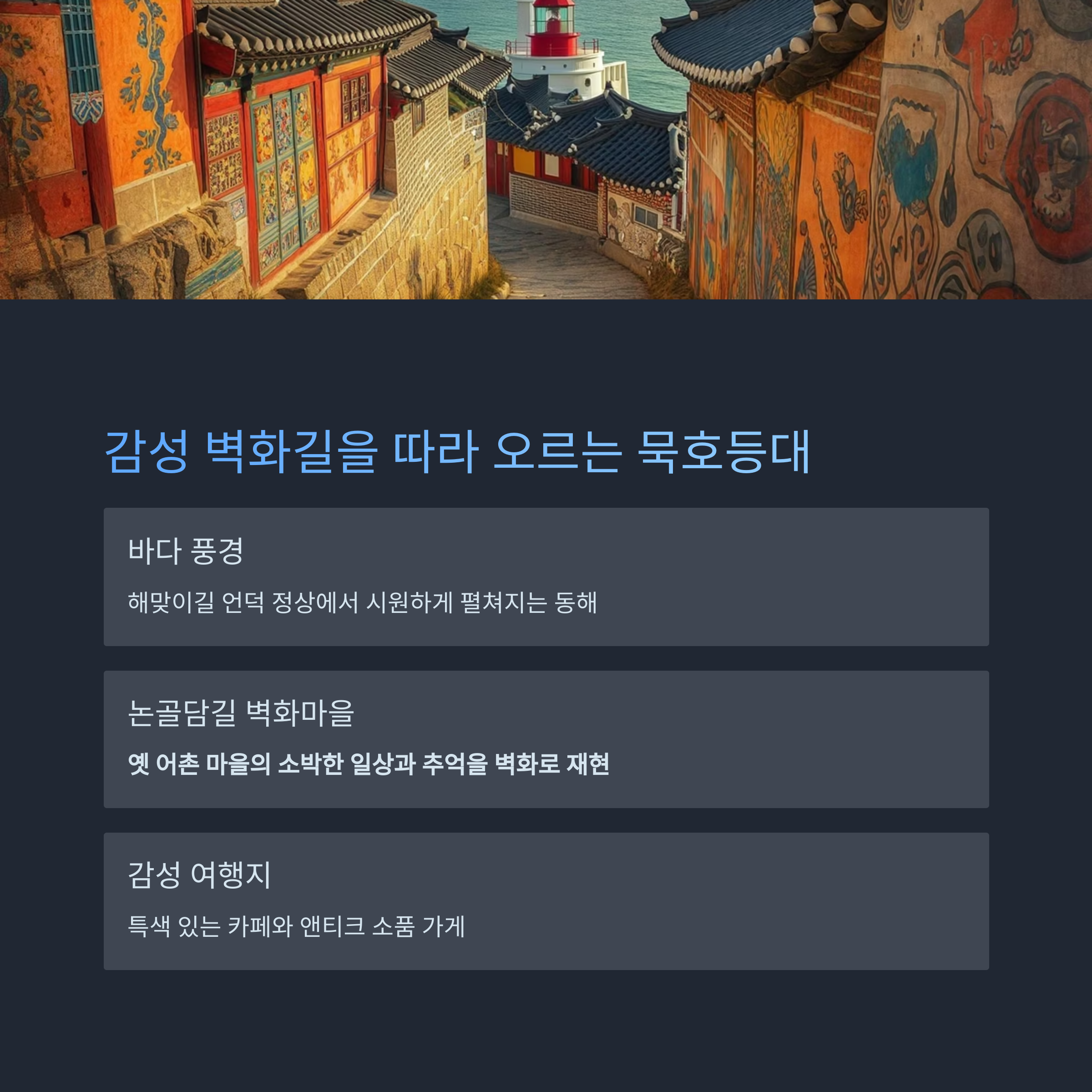 감성 벽화길을 따라 오르는 묵호등대