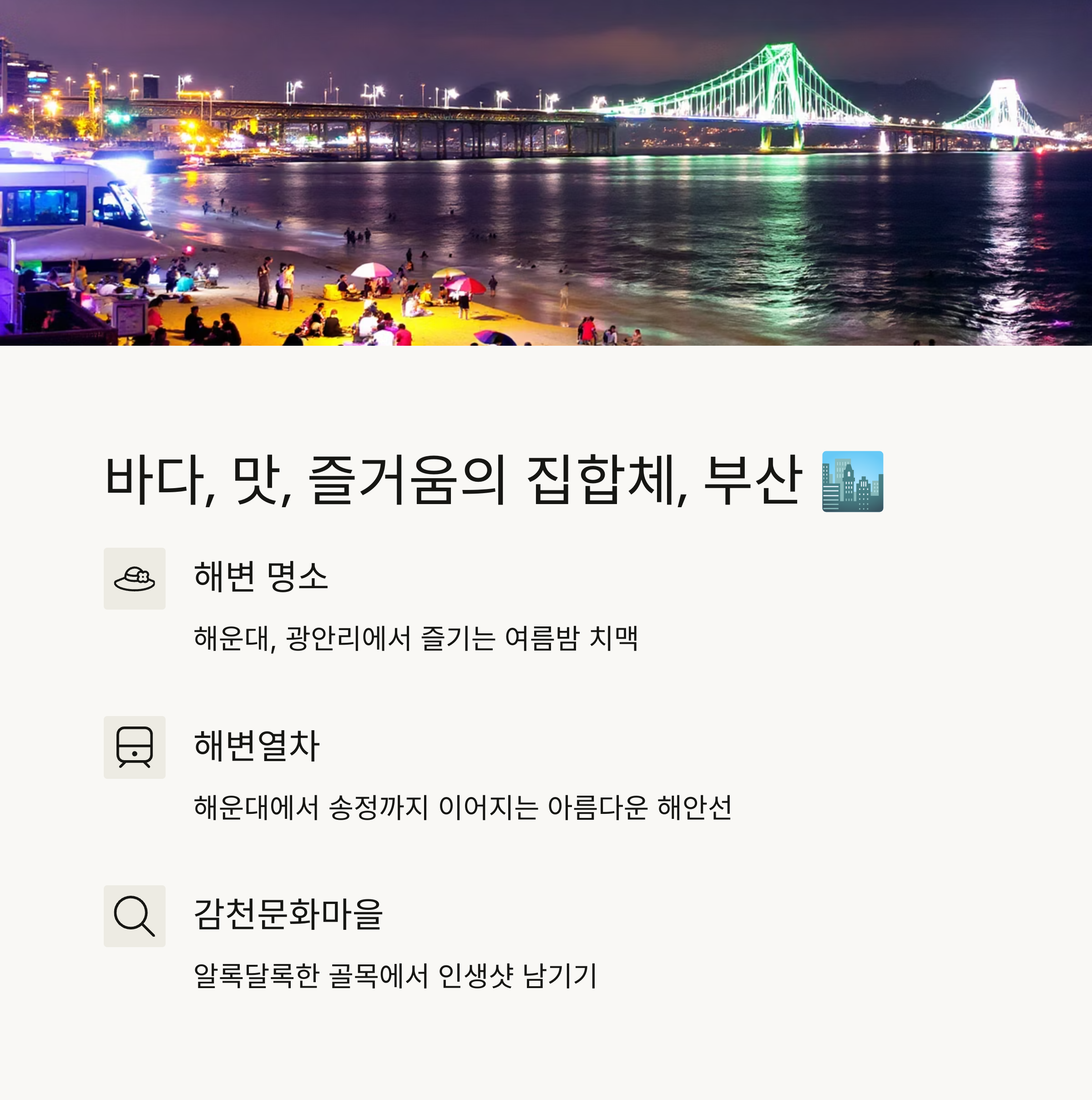 3. 바다, 맛, 즐거움의 집합체, 부산 🏙️