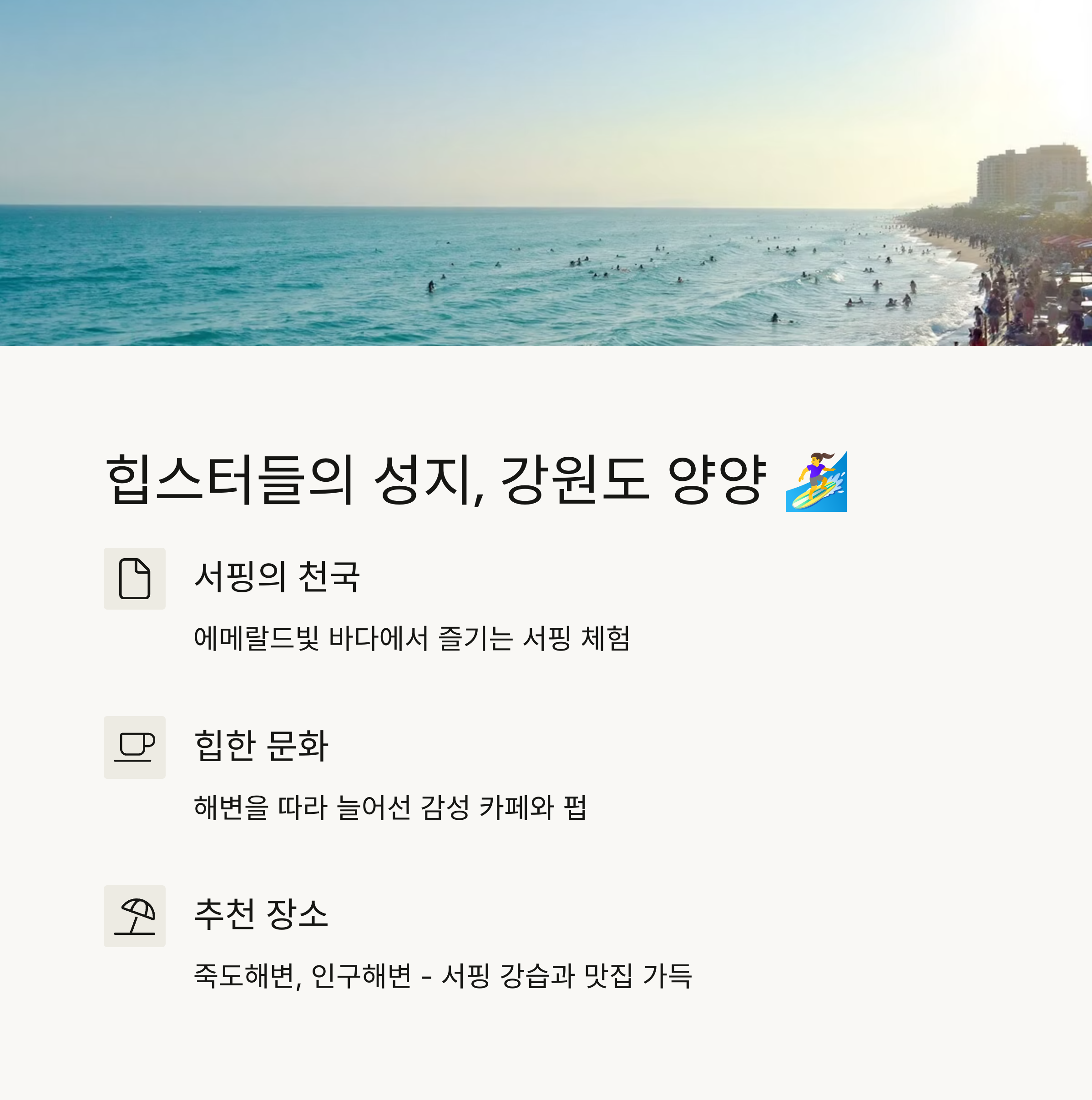 1. 힙스터들의 성지, 강원도 양양 🏄♀️