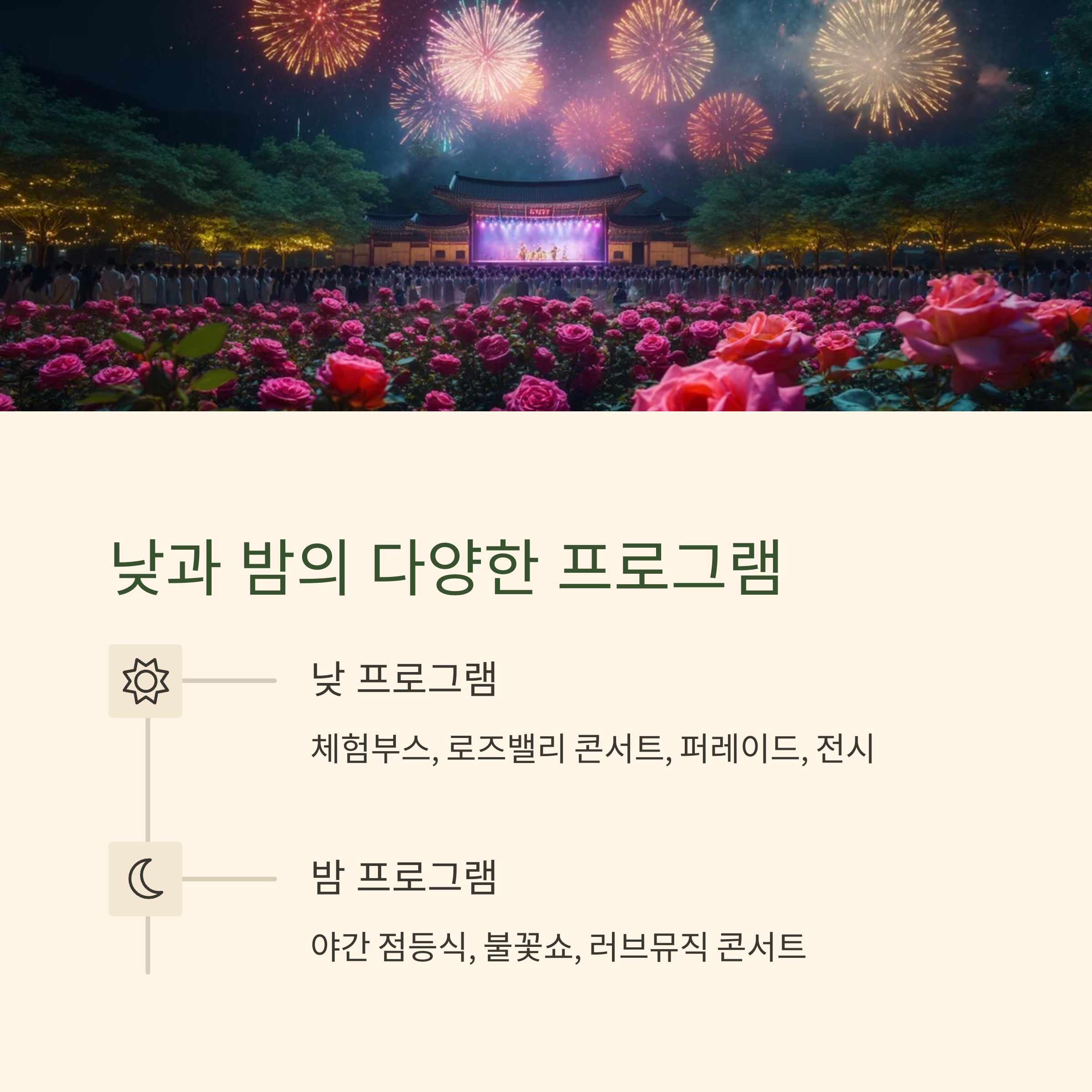 퍼레이드와 전시 부스에서 다양한 장미 문화를 경험할 수 있으며