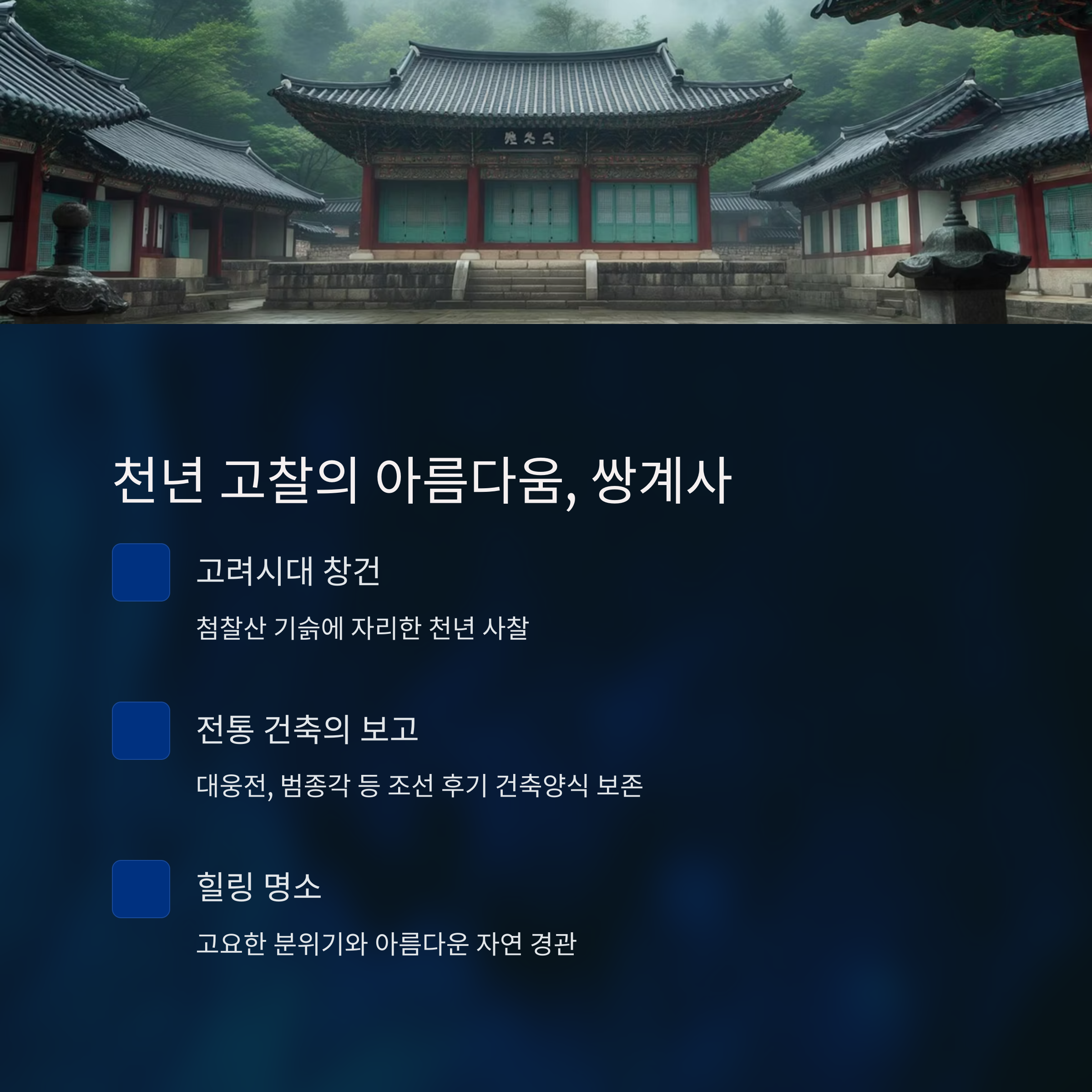 추천 대상 예술·사진 애호가 사찰 탐방·명상 여행자