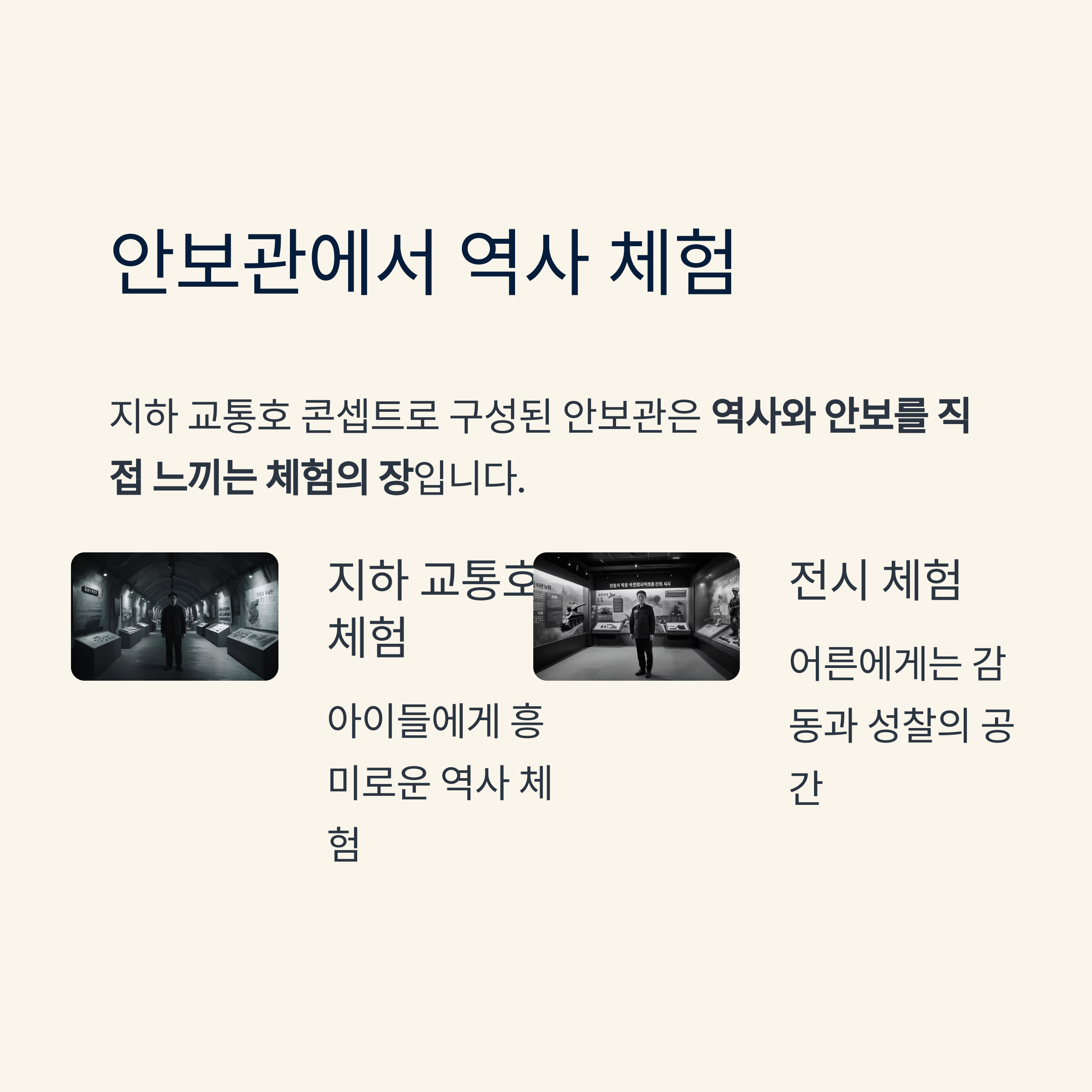 단순한 전시를 넘어서 **"역사와 안보를 직접 느끼는 체험의 장"**으로 운영되고 있습니다.