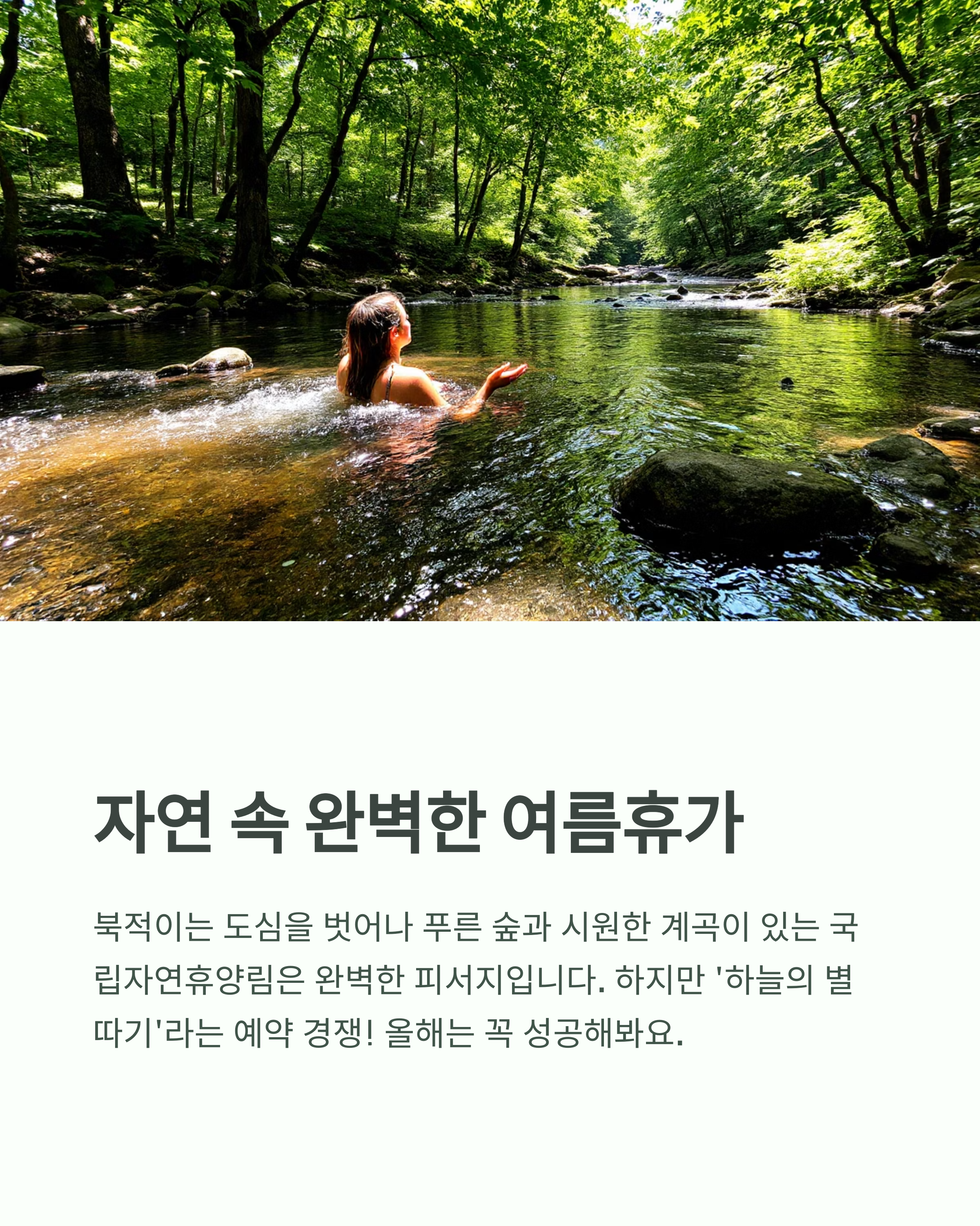 매년 이맘때쯤이면 '올여름엔 어디로 가야 하나' 행복한 고민에 빠지게 되죠. 저도 마찬가지인데요! 😊 북적이는 도심을 벗어나 푸른 숲과 시원한 계곡이 있는 곳으로 떠나고 싶다는 생각이 간절해져요. 그런 면에서 국립자연휴양림만큼 완벽한 피서지가 또 있을까요? 하지만 문제는 바로 '하늘의 별 따기'라는 예약 경쟁입니다. 작년에도 새로고침만 하다가 결국 실패했던 아픈 기억이... (ㅠㅠ) 하지만 올해는 꼭 성공하고 싶다는 의지를 다지며 모든 비법을 알아왔습니다. 저와 함께 올해는 반드시 예약에 성공해 봐요!